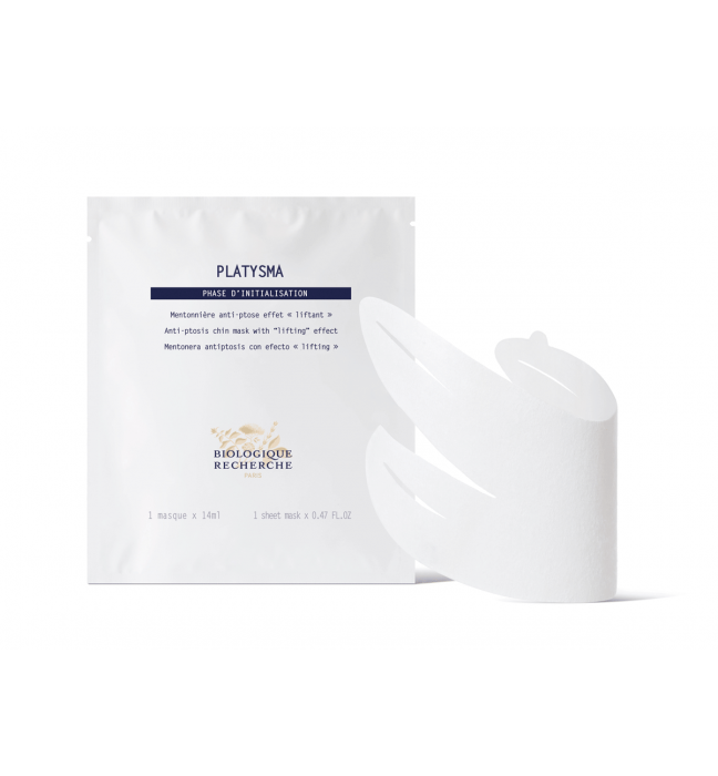 Com uma forma única e em tecido elástico adaptado à zona do baixo queixo, a máscara Platysma combina numa etapa única, os benefícios anti-gravidade e anti-ptose.